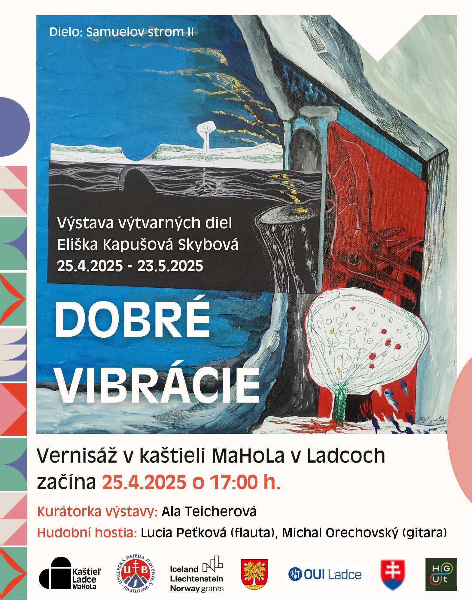 Nová unikátna výstava obrazov DOBRÉ VIBRÁCIE sa blíži do nášho kaštieľa. Začíname už 25. apríla 2025 o 17:00, kedy prebehne aj vernisáž, na ktorej vás poteší nie len skvelá spoločnosť, ale aj hudobní hostia.